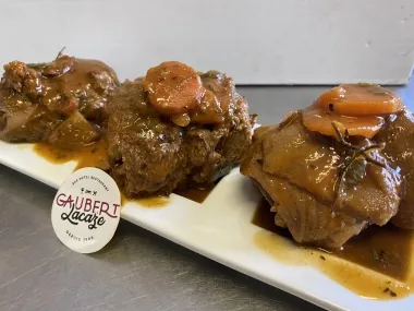 C’est une cuisine régionale qu’Isabelle vous prépare dans son restaurant : tripoux maison, tête de veau sauce Gribiche, confits de canards, poulet sauté, desserts maison : framboisiers, charlottes aux poires… Un véritable délice pour vos papilles. Ici on mange vrai, traditionnel, et c’est bon !